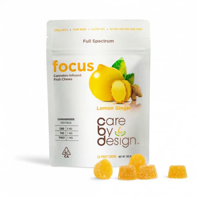 Spice up your midday pick me up! The peppery, zesty, and delicious tart flavor of these Lemon Ginger full-spectrum cannabis gummies are formulated to help you flourish, and improve your outlook. Featuring THC, CBDa & THCv to enhance focus. Focus gummies have 7mg of full-spectrum cannabinoids per piece.