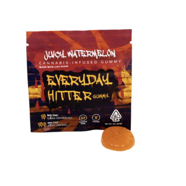 Everyday Dabs - The perfect balance of value and quality! The "Hitter" Gummy line is designed for the high-dosage individual, with 100mg in a single gummy, you're sure to have a fantastic time! Ingredients: water, sugar, pectin, liquid glucose, natural flavoring and color, cornstarch, sodium citrate, citric acid, cannabis concentrate