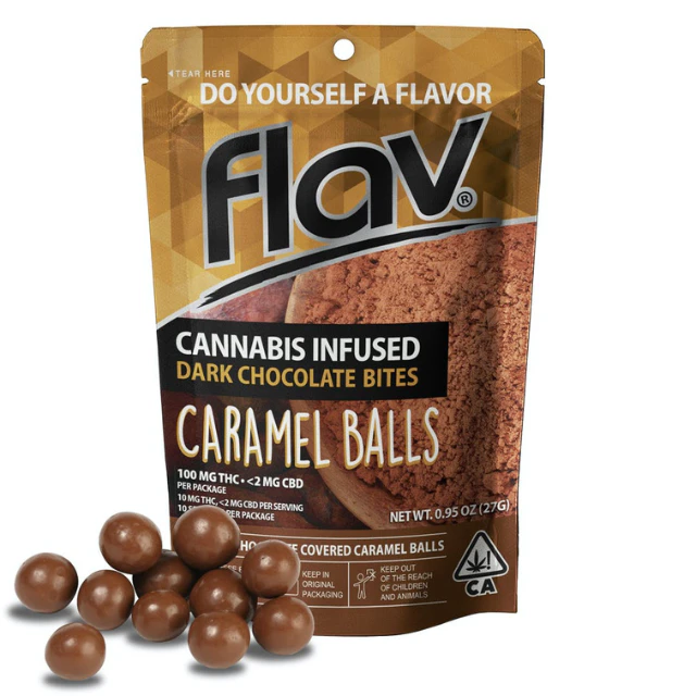 STRAIN PROFILE: Flav Caramel Balls are dark chocolate coated balls of caramel with a slight coffee finish and a dusting of cocoa powder. Add that to being infused with premium cannabis, and you have a delicious snack with 10mg THC per piece for easily controlled dosing