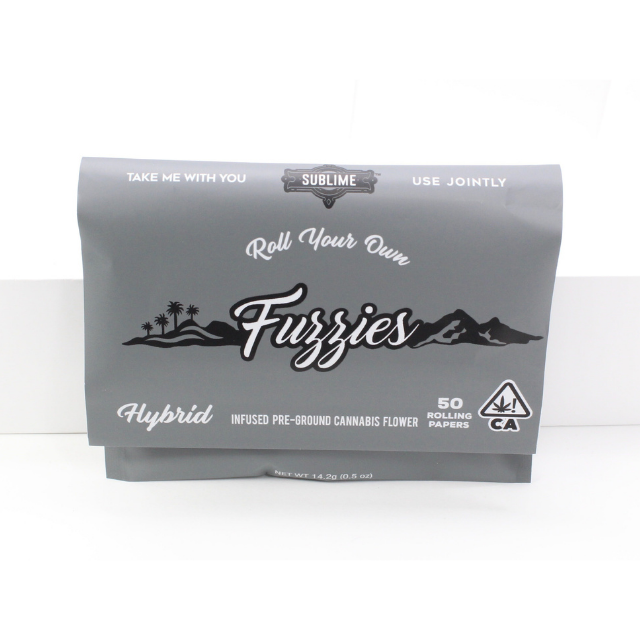 BRAND PROFILE: Roll-Your-Own Fuzzies infused pre-ground flower offers the freedom to pack your paper, piece, or pipe just the way you like it. Enjoy all the potency and smooth taste of Fuzzies canna strains in every portable pouch. From flower to finish, Sublime controls every aspect of production to ensure the highest level of quality and consistency. All Sublimes products start with pesticide, heavy metal, and microbial-free, organic flower from indoor and light assist farms throughout California. Roll-your-own Fuzzies are for the trailblazers. Pre-ground infused flower pouches of Indica, Sativa, and Hybrid strains let you take life by the joint. Just pick your mood, let it roll, then light up and feel Fuzzie.