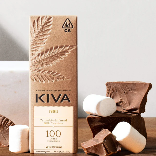 Get lit by a different kind of fire with a hot Kiva take on an old classic. The Kiva Smores Bar features sweet milk chocolate stacked with chewy marshmallow pieces and crunchy graham cracker chunks. Each square contains 5MG of THC, the perfect amount to make you one happy camper… and leave you wanting s’more.