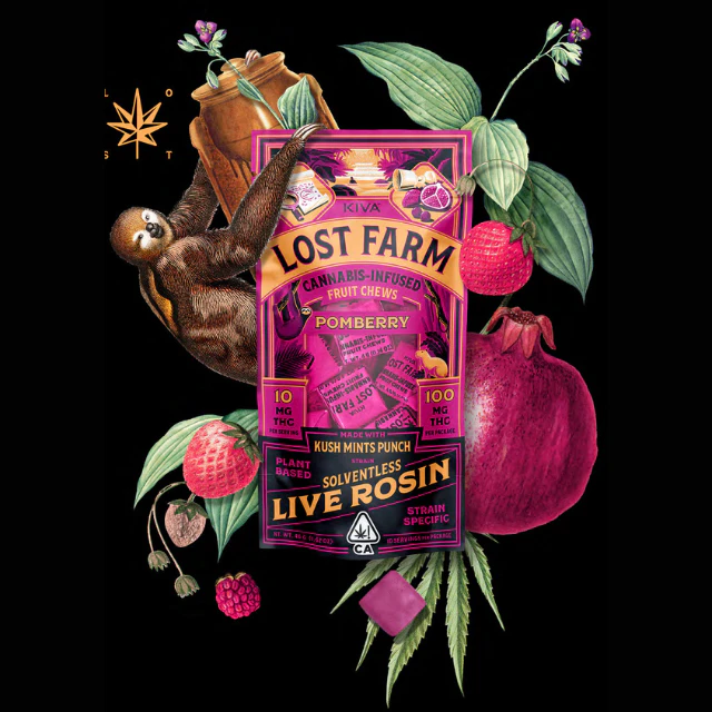 Lost Farm's Pomberry Kush Mints Punch Live Rosin Fruit Chews are a delightful treat for those seeking a relaxing and enjoyable experience. These innovative fruit chews offer a potentially soothing and uplifting effect, perfect for unwinding after a long day. With a unique blend of terpenes and a delicious fruity flavor, these edibles are sure to provide a fun and flavorful way to enhance your day.