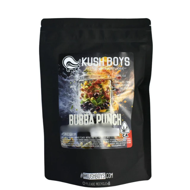 Bubba Punch is an indica strain created through crossing the potent Pre-98 Bubba Kush X Purple Punch strains. This tasty bud offers a stoney, heady high with an amazing flavor that will have you dreaming of more after just one tasty little toke. The Bubba Punch high will hit you square in the face as soon as you exhale, infusing you with an immediately stoney cerebral sense that has you feeling insanely happy but totally unaware of what's happening around you. You'll find that laughter comes easily at this point, although you may just be uncontrollably giggling at something in your own mind rather than something happening around you. A light physical relaxation accompanies this heady lift, keeping you calm and collected. This bud has a sweet and fruity blueberry flavor with light touches of spicy dank. The aroma is on the heavier end of the spectrum, with a spicy and hazy dank overtone accented by sweet blueberries and cherries.