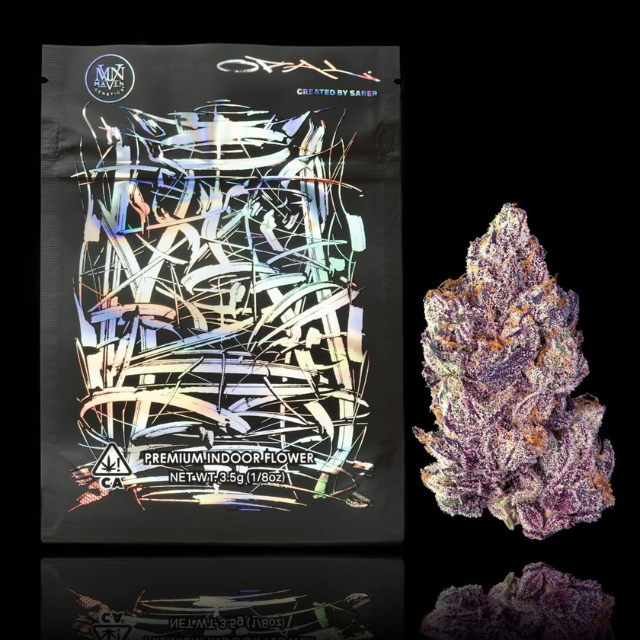 Introducing Opal, the second limited-edition release of our Artist Series collaboration, highlighting international graffiti legend Ryan Weston Shook, aka Saber. This bold, iridescent Indica-dominant Hybrid cross between our Blue Agapē and Carbon Candy display violet-hued buds interwoven with copper pistils coated with a layer of trichomes resembling sugar crystals. A flowery aroma reminiscent of rosewood enhances upon inhalation and is balanced by the sharpness of fir needle and fuel, while a burst of confectionary notes remains on the finish. This gem of a strain has a kaleidoscopic range of uplifting mental and calming physical effects and is the perfect choice to polish off your day.