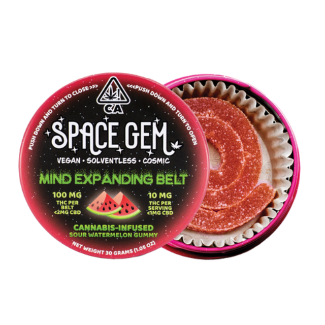 Space Gem Sour Watermelon Mind-Expanding Belts are packed with juicy sour watermelon flavors and offers a well-rounded, body soothing high. Why We Love It: Great for those who have a high tolerance or those who like a high dosage high the Space Gem Sour Watermelon