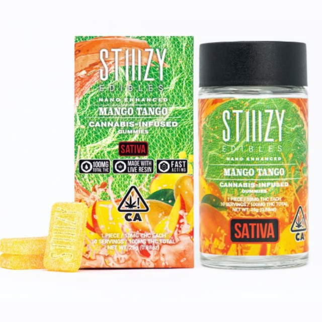 Mango Tango is an energetic Sativa. This gummy blends sweet and tangy flavors that are a blast! Introducing our new line of STIIIZY edibles. Your favorite live resin-infused gummies are formulated with fast-acting nanotechnology in 10 mg pieces. Enjoy the blend of both delicious and mouth-watering flavors in every bite.