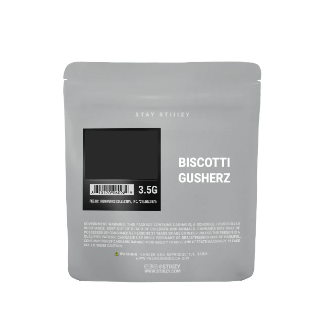Biscotti Gushers packs it all into each and every toke. This bud has a super sweet fruity berry flavor with hints of skunky citrus and earthy pine on exhale. The aroma is heavy and pungent, with a spicy gas overtone that's accented by fresh ripe berries and sweet fruits. The Biscotti Gushers high hits you almost as soon as you experience your final exhale, filling your mind with a lifted sense of happiness that has you feeling happy, calm and totally at ease with the world around you.