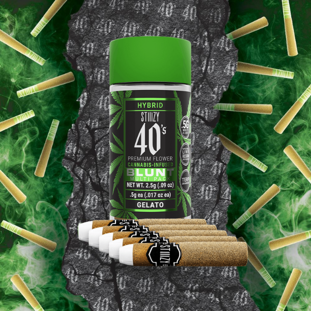 STIIIZY 40’s Mini Blunts Multipack is filled with premium grown STIIIZY cannabis and packed in individual glass vials to maintain freshness and potency. Each 40’s Mini Blunt is rolled with 100% tobacco free, kief dusted hemp wraps which packs a flavorful and potent punch with every exhale, and the tightly secured custom glass tips have been perfected to provide an amazing and consistent burn every time. The STIIIZY 40’s Mini Blunts Multipack is reinventing your high experience by being one of the first to introduce 40% THC and total cannabinoids potency with special live resin infusion.